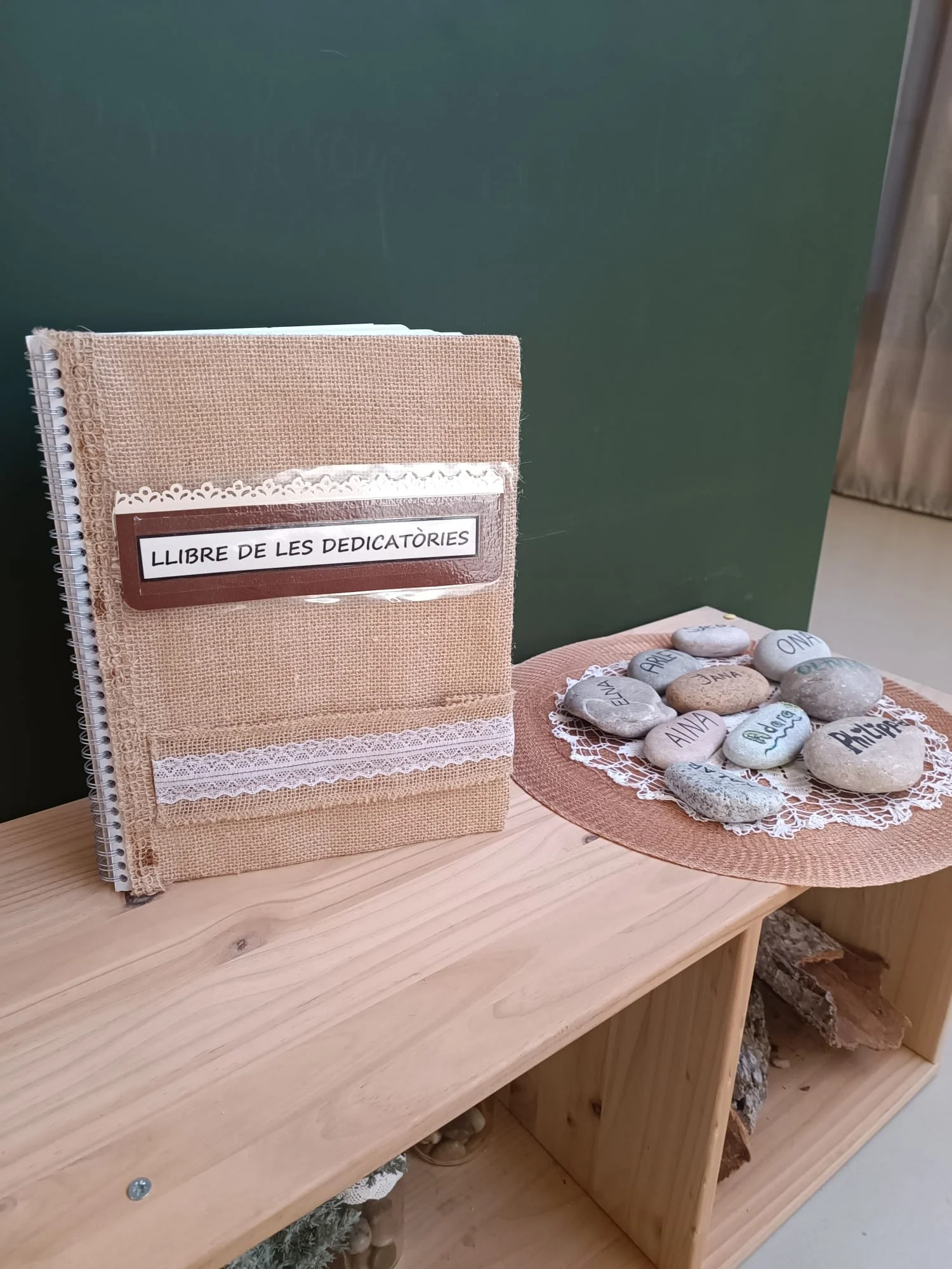 Actualment, el llibre de les dedicatòries està situat al hall, creant un espai viu perquè totes les persones vinculades a la llar d’infants que ho desitgin puguin deixar la seva empremta a través d'un text, una fotografia, un dibuix... Es tracta d'un recull d'experiències, de records, de moments viscuts, on cadascú pot deixar-hi el seu granet de sorra.